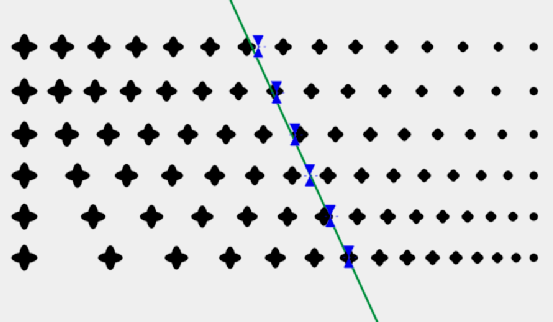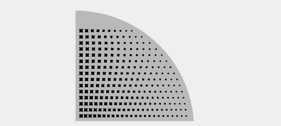 6.此时出现的规律A 可以形容为左下角按照弧线慢慢变大,间距慢慢变大稀疏。右下角却变得密集。如图26所示。