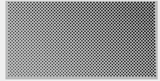 5.将**排图案【CTRL+D】再制,复制6列。随后依次将【间距分布】拖动到绿线参考线上,会发现出现了规律A,如图25所示。考虑工艺制约和成本限制,决定网孔数量和间距,横向15个,纵向6行,从而数量和间距满足铝合金冲压技术要求。而呈现的规律与工艺成本不相关,主要风格美感相关,而基础单元的尺寸、数量、间距与工艺密切相关。