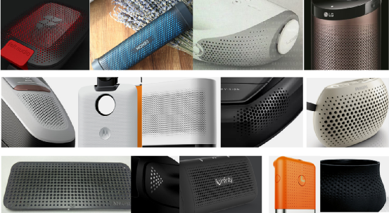 考虑以上的因素,即满足产品规划要求,又可以快速变化图案灵活性。如图34所示,180X100mm背景面积的图案应用于便携音箱。